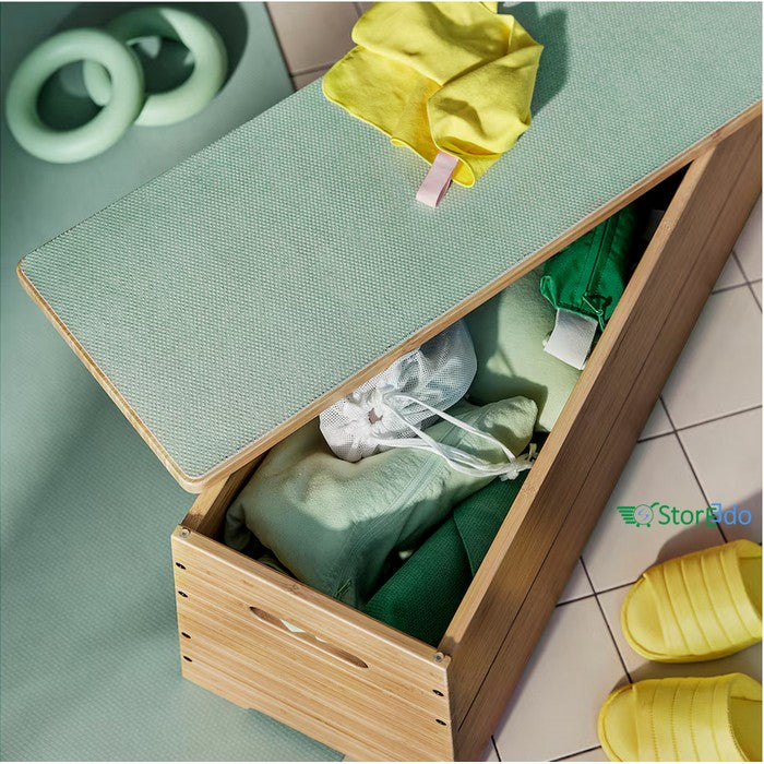 Bamboo bench with a soft pad on top that can be removed – perfect for exercising, but also great as a bench in the hallway or as a coffee table in the living room.