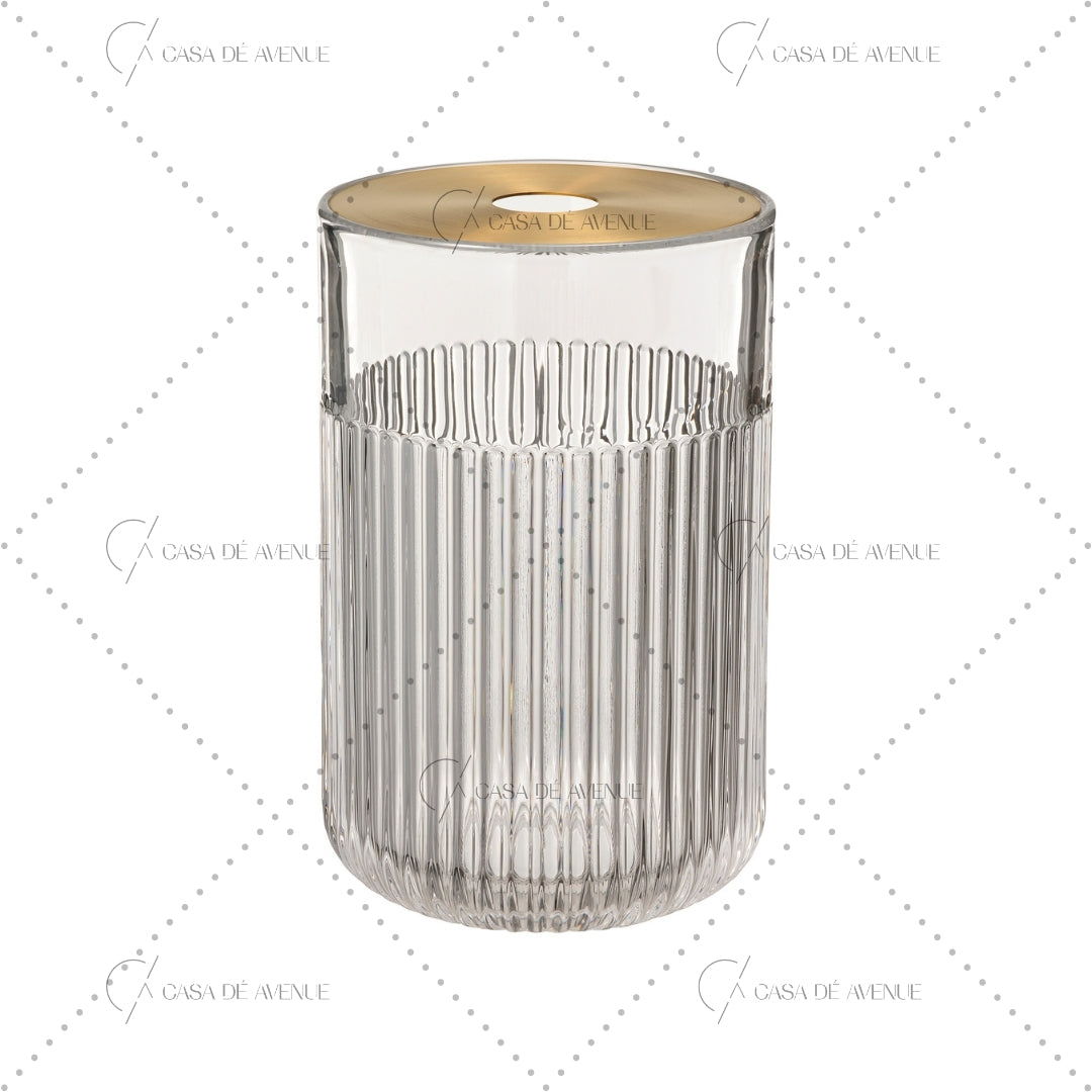 • The removable gold-coloured metal lid has a hole where you can place a single flower stem or twig.