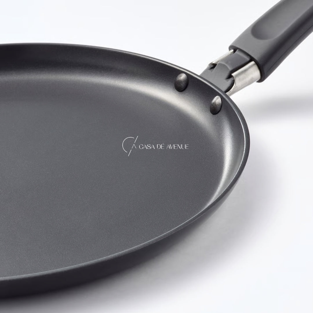 • The pan has a low edge and sloping sides that make it easy to flip pancakes and crepes.