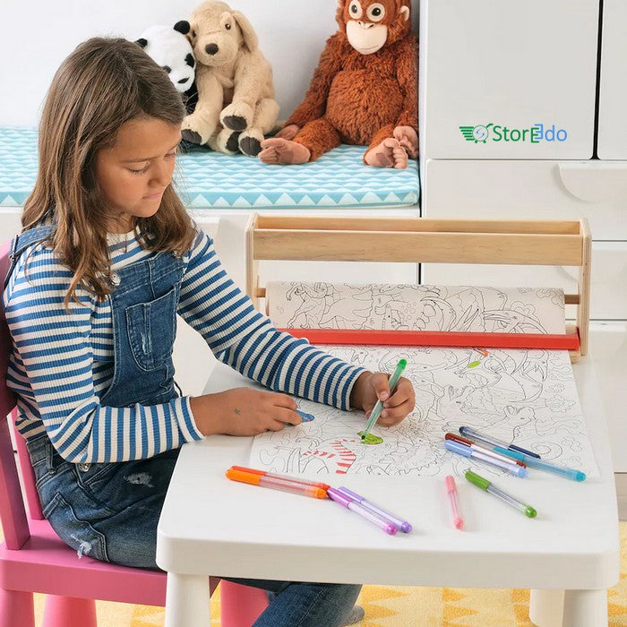 • Joint holder for paper roll, pens and paints; place on a level surface.