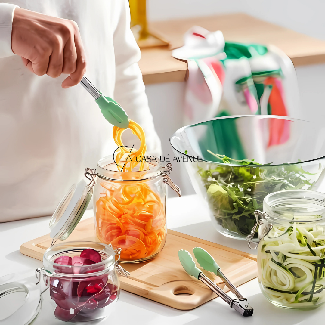 The handle of the tongs has a closing mechanism for easy storing and a spring that makes them easy to use.